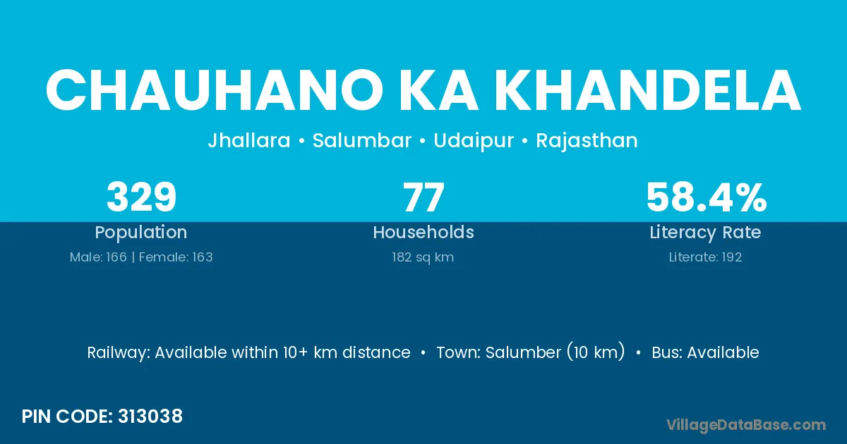 Chauhano Ka Khandela village has a total population of 329 people, of which 166 are males and 163 are females.