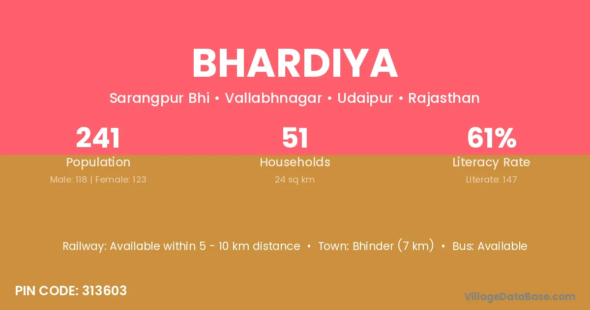 According to Census 2011 information, the village code of Bhardiya village is 313603.
