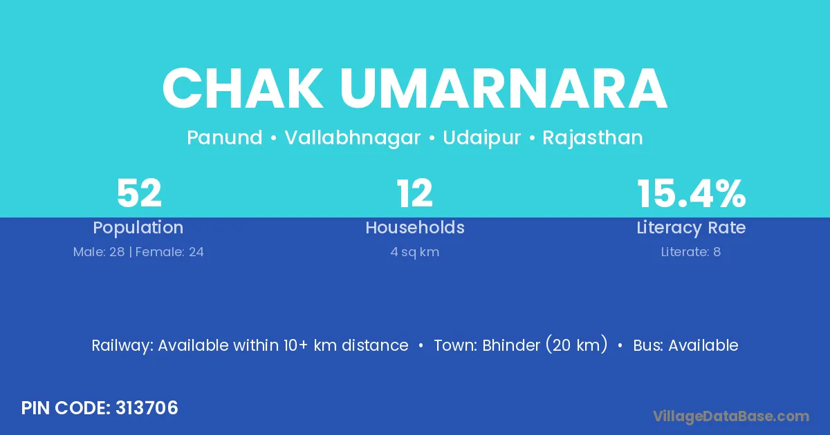 Bhinder (20 km) is the nearest town to Chak Umarnara village for major economic activities and is located approximately 20 km away.