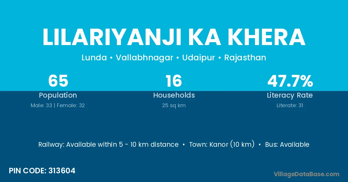 Lilariyanji Ka Khera village has a total population of 65 people, of which 33 are males and 32 are females.