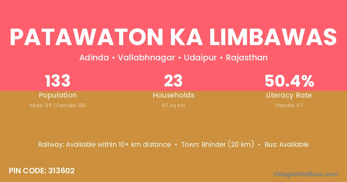 Patawaton Ka Limbawas village is located in the Vallabhnagar Tehsil of the Udaipur district in Rajasthan .