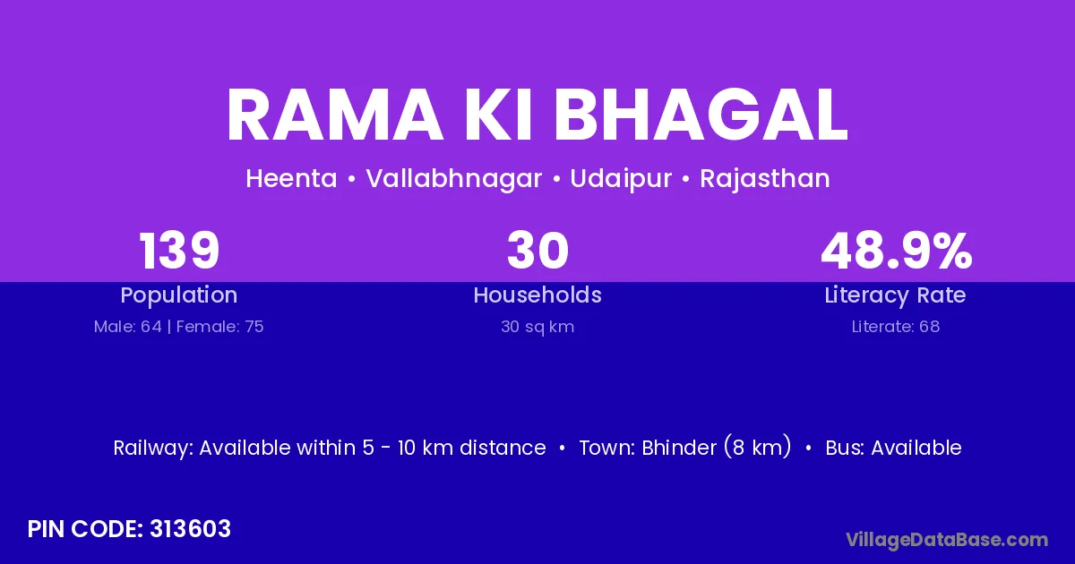 Rama Ki Bhagal village has a total population of 139 people, of which 64 are males and 75 are females.
