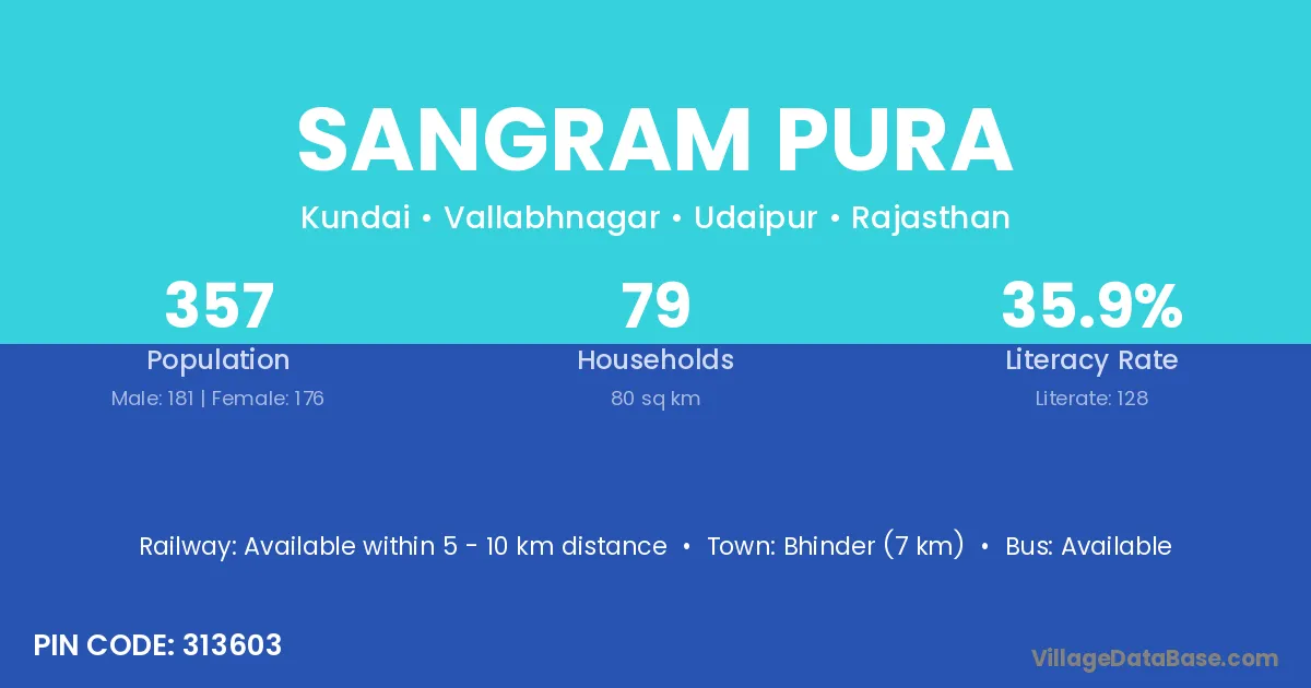 Sangram Pura village has a total population of 357 people, of which 181 are males and 176 are females.