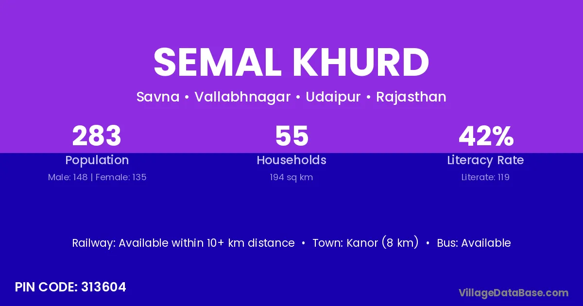 Kanor (8 km) is the nearest town to Semal Khurd village for major economic activities and is located approximately 8 km away.