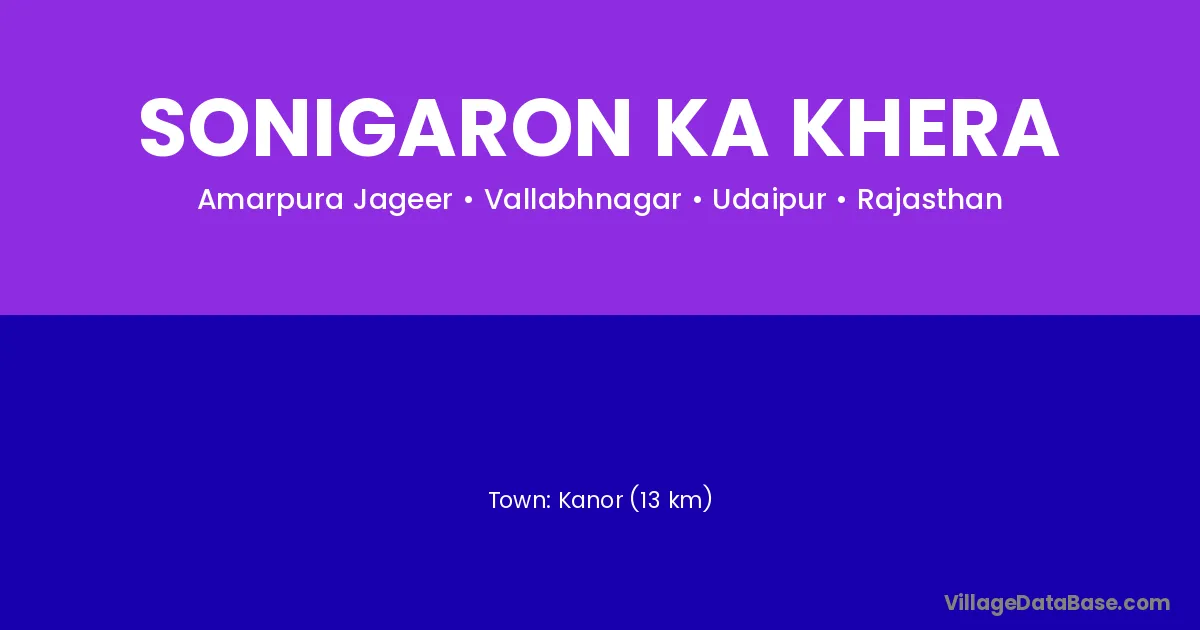 Kanor (13 km) is the nearest town to Sonigaron Ka Khera village for major economic activities and is located approximately 13 km away.