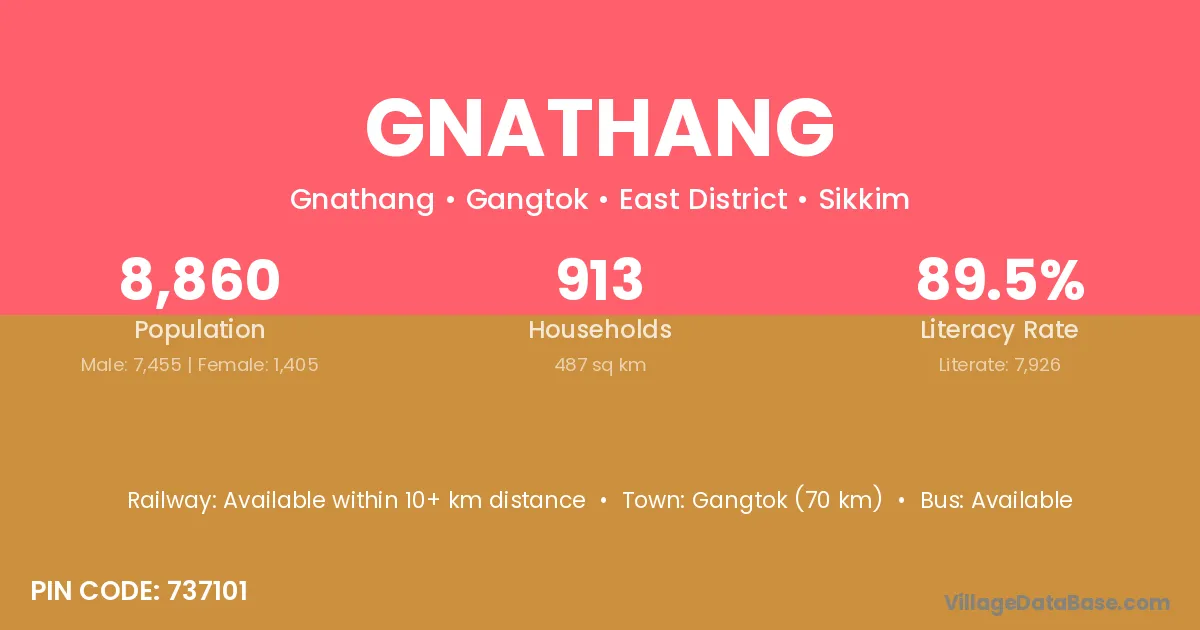 According to Census 2011 information, the village code of Gnathang village is 737101.