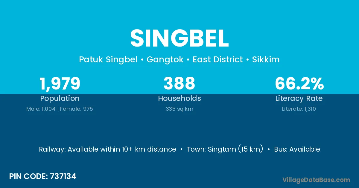 Singtam (15 km) is the nearest town to Singbel village for major economic activities and is located approximately 15 km away.