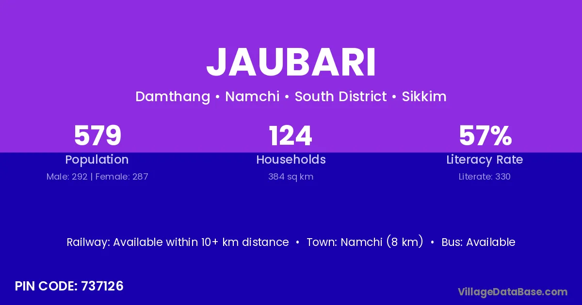 Jaubari village has a total population of 579 people, of which 292 are males and 287 are females.