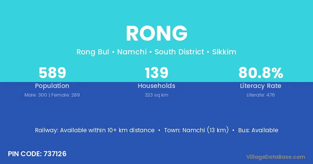 According to Census 2011 information, the village code of Rong village is 737126.