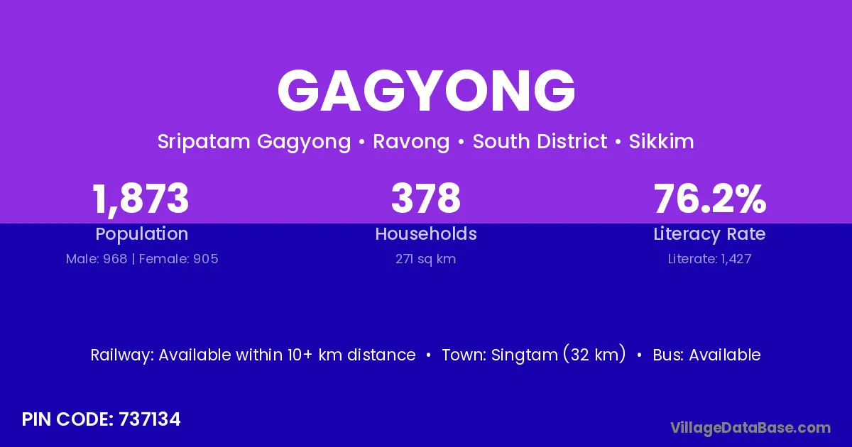 Singtam (32 km) is the nearest town to Gagyong village for major economic activities and is located approximately 32 km away.