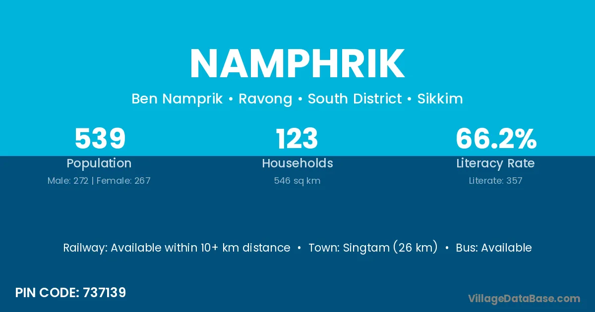 Singtam (26 km) is the nearest town to Namphrik village for major economic activities and is located approximately 26 km away.