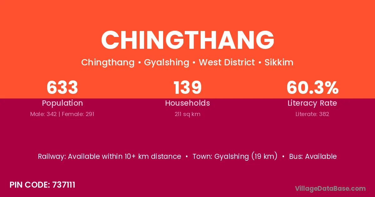 Chingthang village has a total population of 633 people, of which 342 are males and 291 are females.