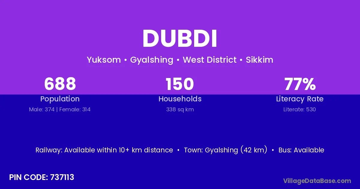 According to Census 2011 information, the village code of Dubdi village is 737113.