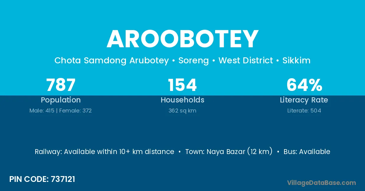 According to Census 2011 information, the village code of Aroobotey village is 737121.