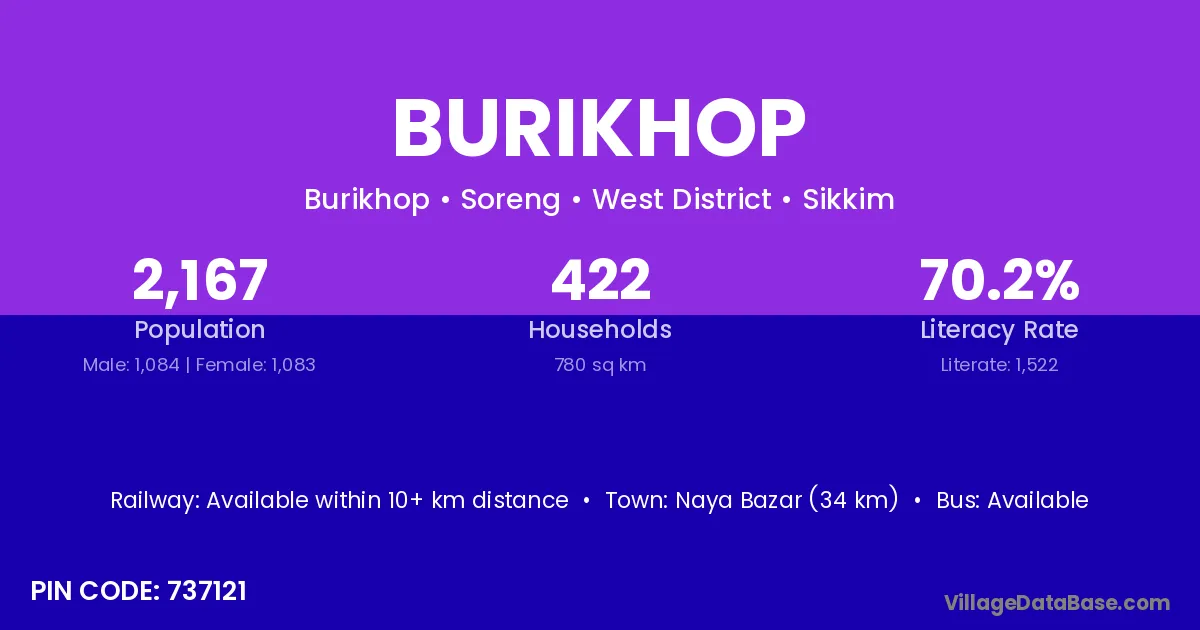Naya Bazar (34 km) is the nearest town to Burikhop village for major economic activities and is located approximately 34 km away.