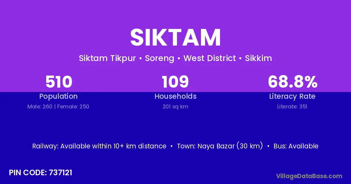 According to Census 2011 information, the village code of Siktam village is 737121.