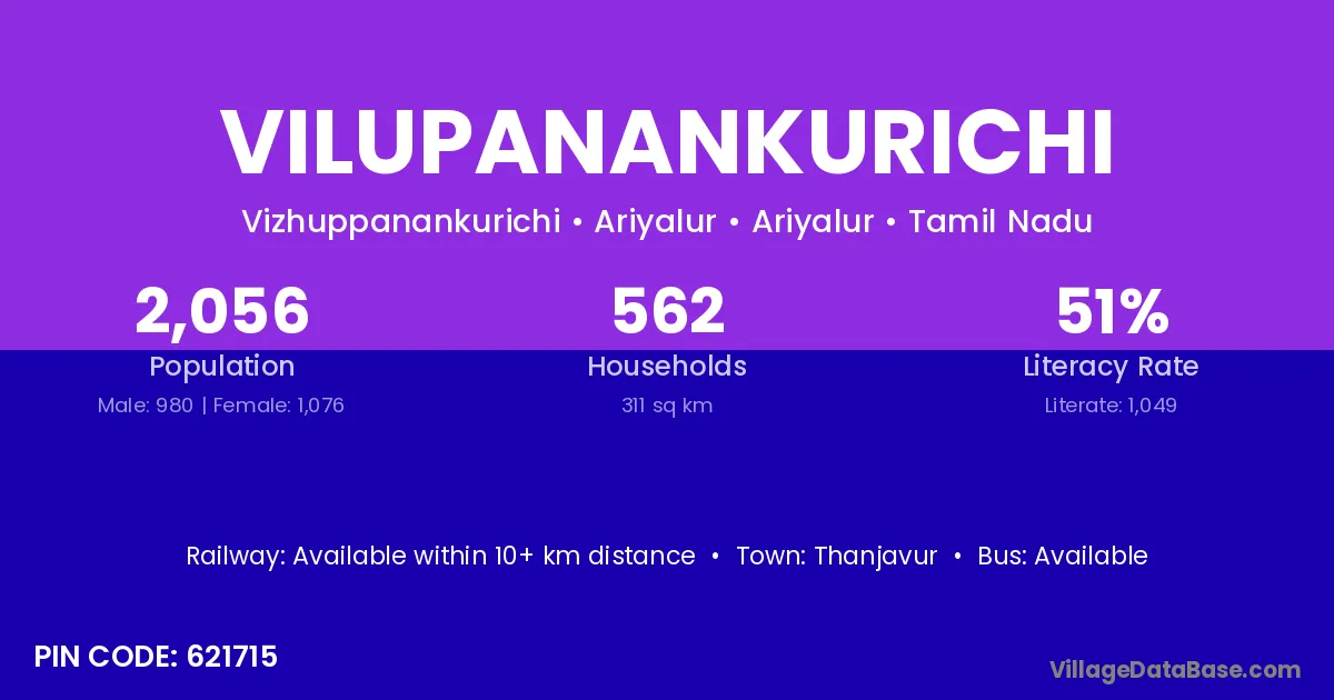 Thanjavur is the nearest town to Vilupanankurichi village for major economic activities