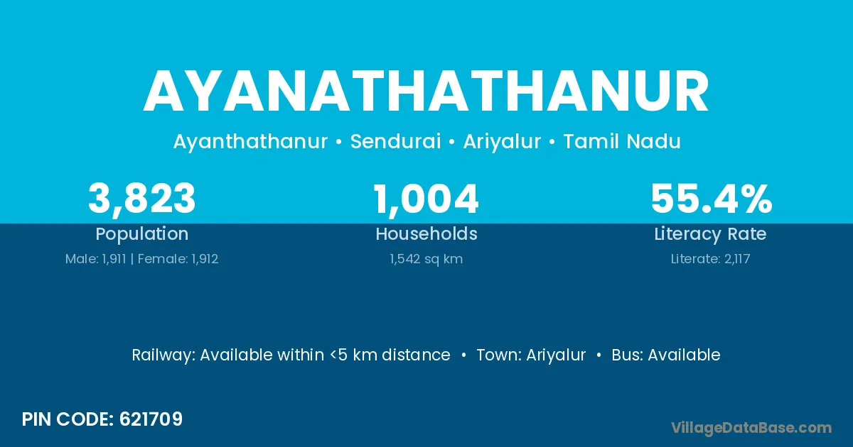 Ariyalur is the nearest town to Ayanathathanur village for major economic activities