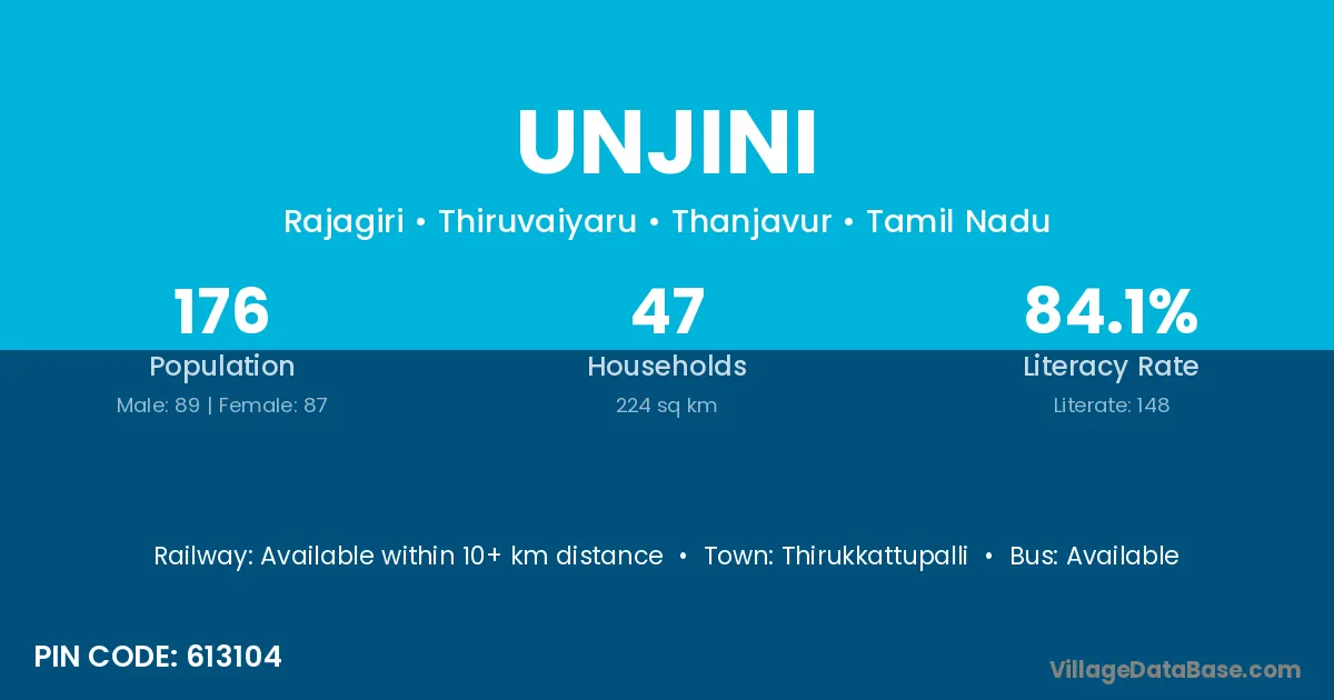 Ariyalur is the nearest town to Unjini village for major economic activities