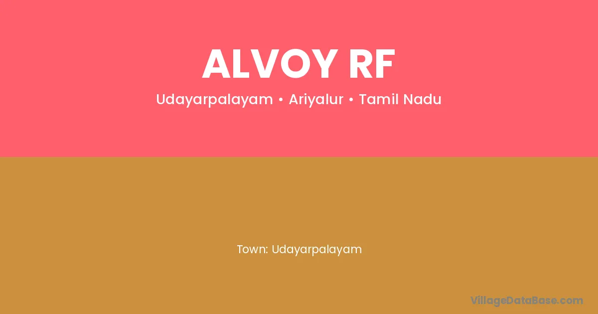 Udayarpalayam is the nearest town to Alvoy Rf village for major economic activities