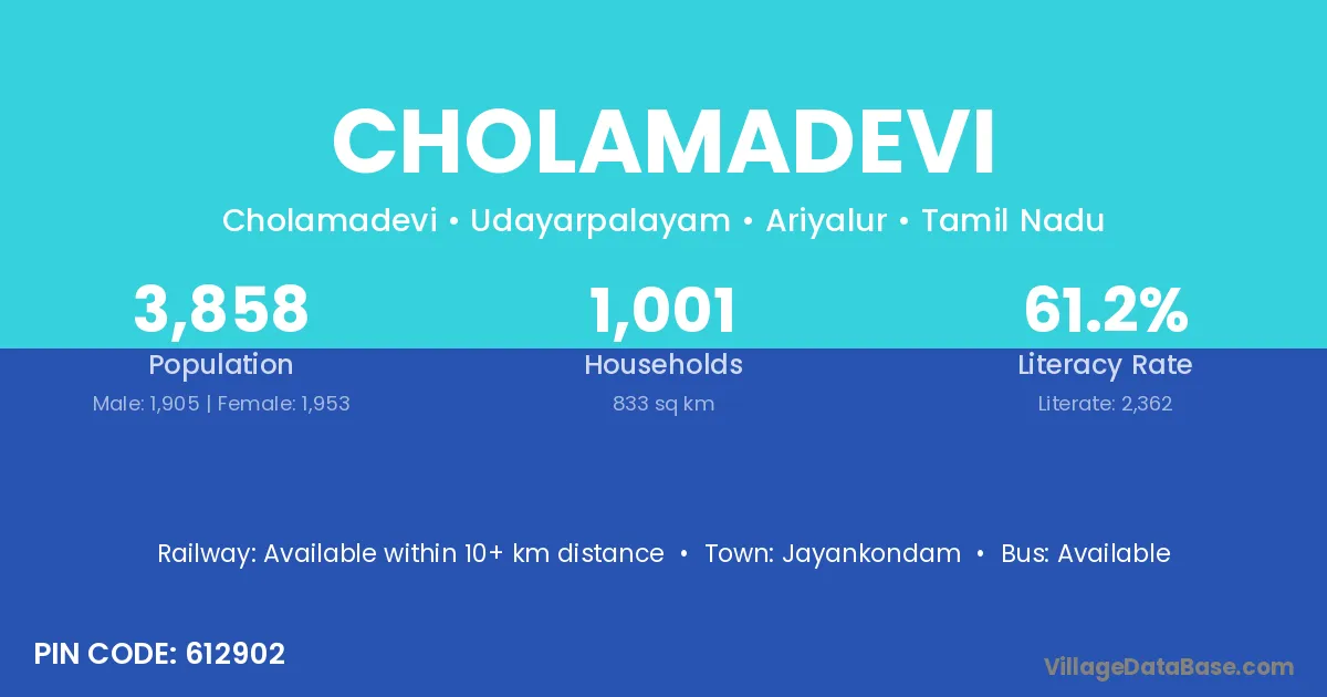 Jayankondam is the nearest town to Cholamadevi village for major economic activities