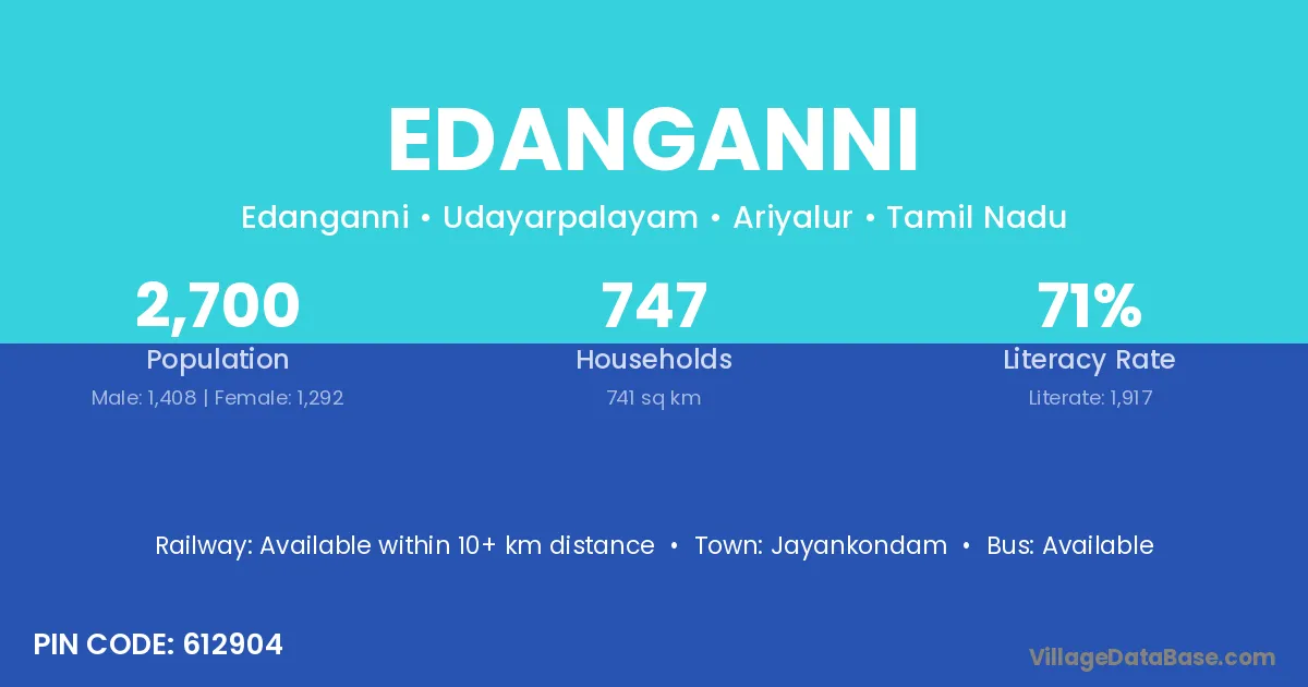 Jayankondam is the nearest town to Edanganni village for major economic activities