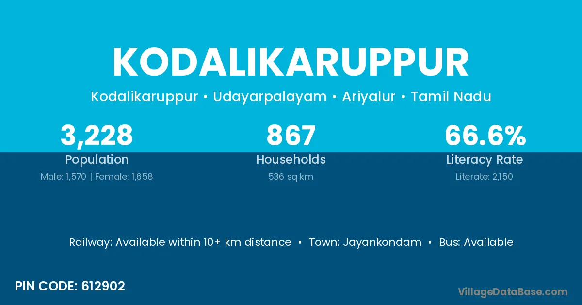 Jayankondam is the nearest town to Kodalikaruppur village for major economic activities