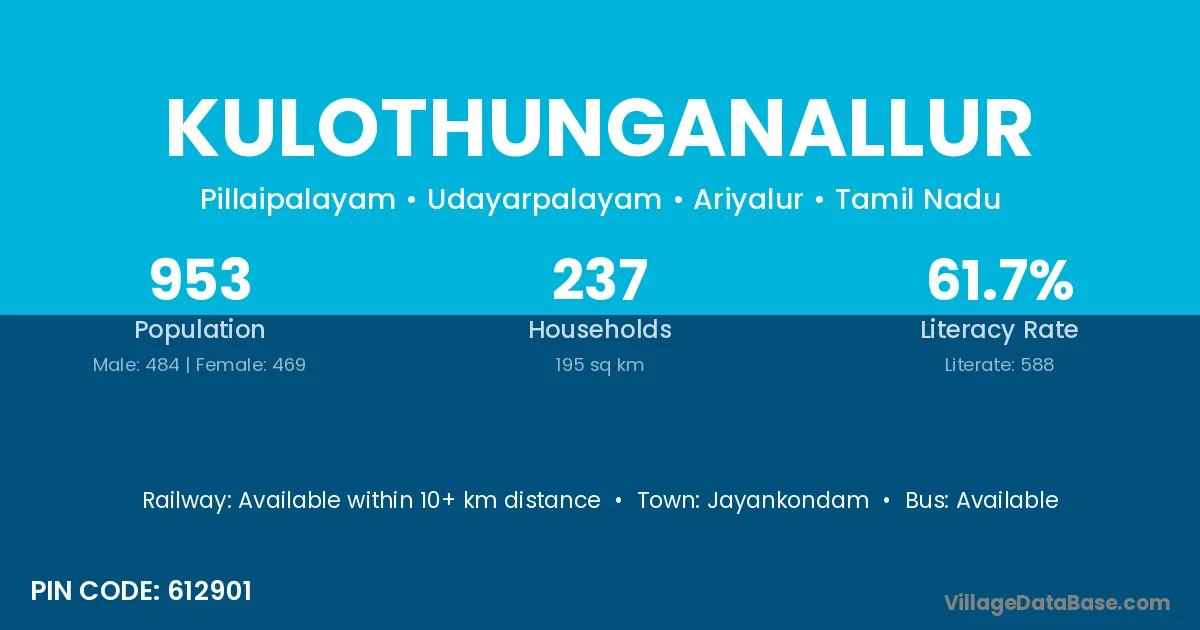 Jayankondam is the nearest town to Kulothunganallur village for major economic activities