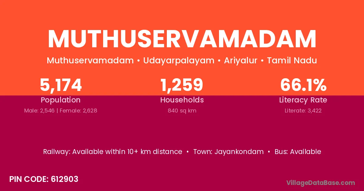 Jayankondam is the nearest town to Muthuservamadam village for major economic activities