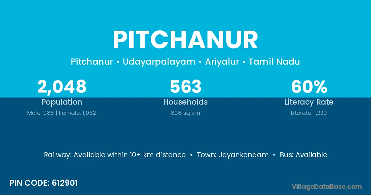 Jayankondam is the nearest town to Pitchanur village for major economic activities