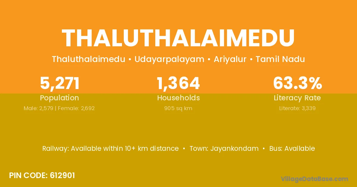 Jayankondam is the nearest town to Thaluthalaimedu village for major economic activities