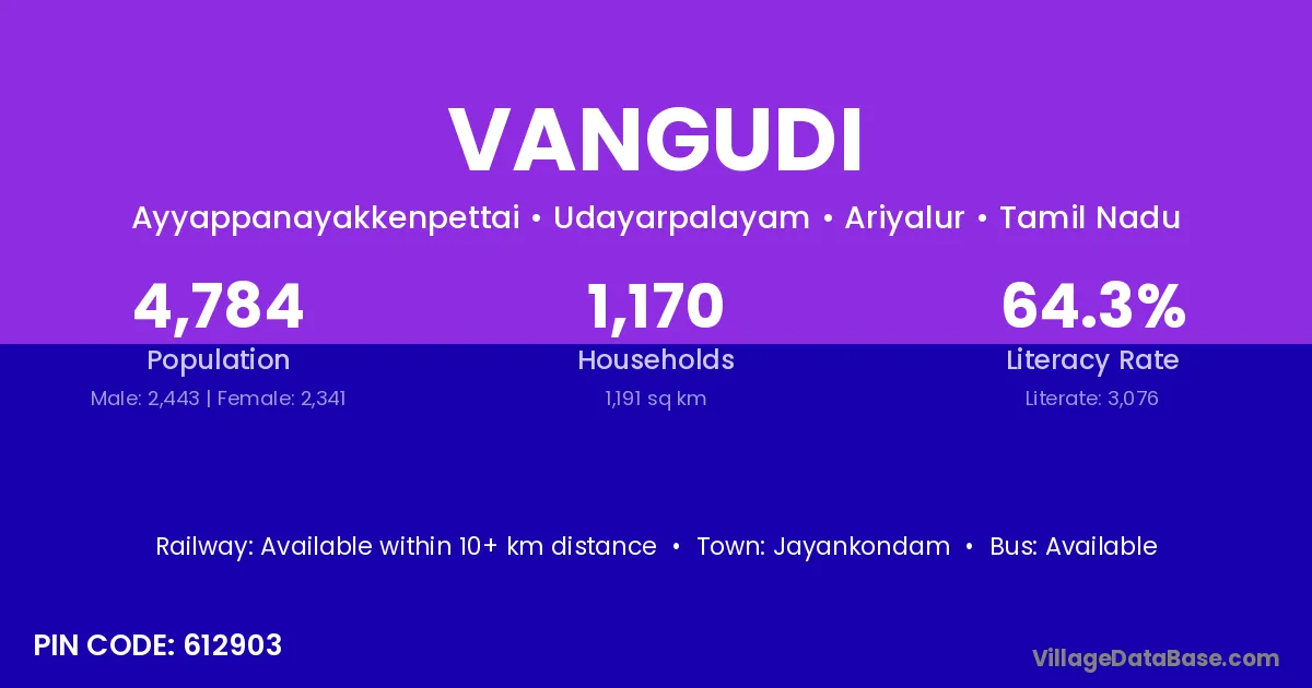 Jayankondam is the nearest town to Vangudi village for major economic activities