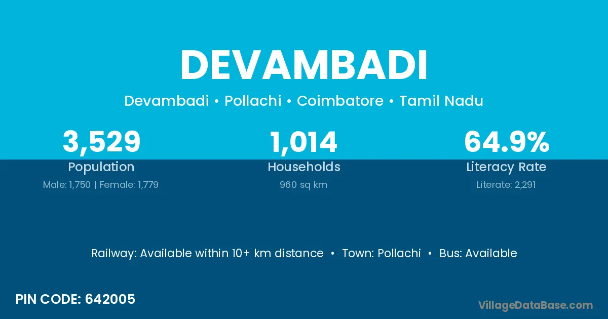 According to Census 2011 information, the village code of Devambadi village is 642005.