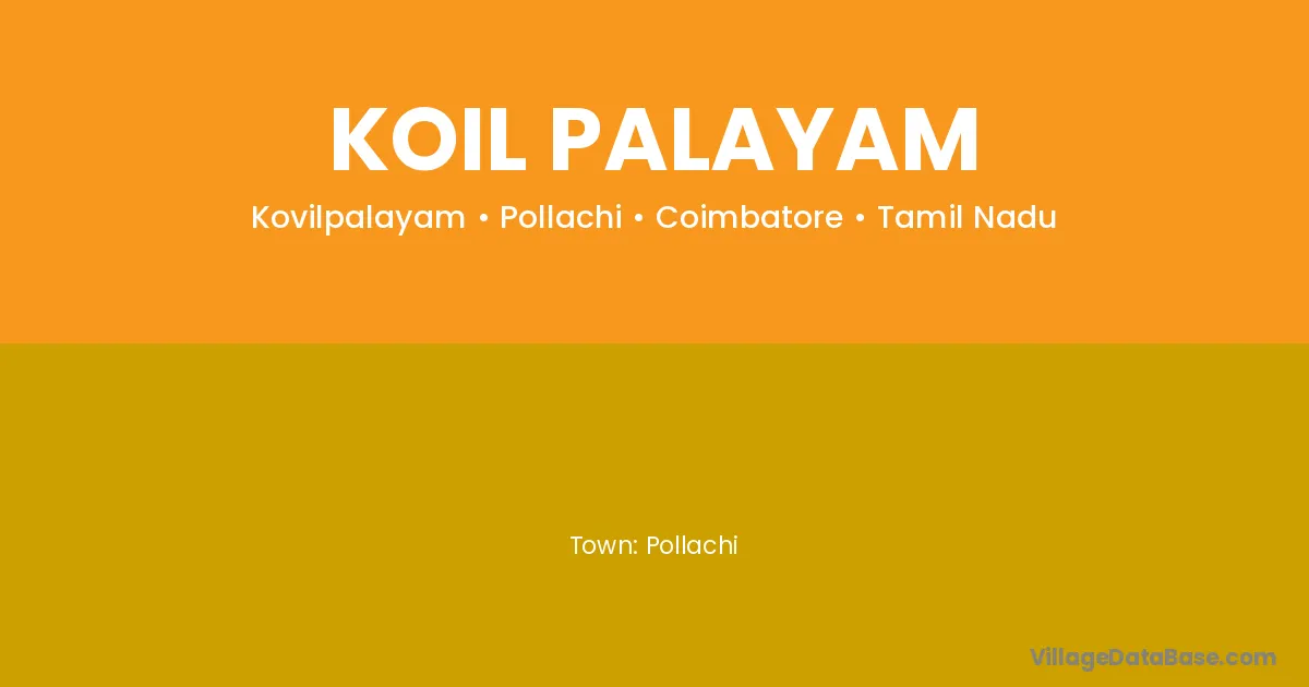 Pollachi is the nearest town to Koil Palayam village for major economic activities