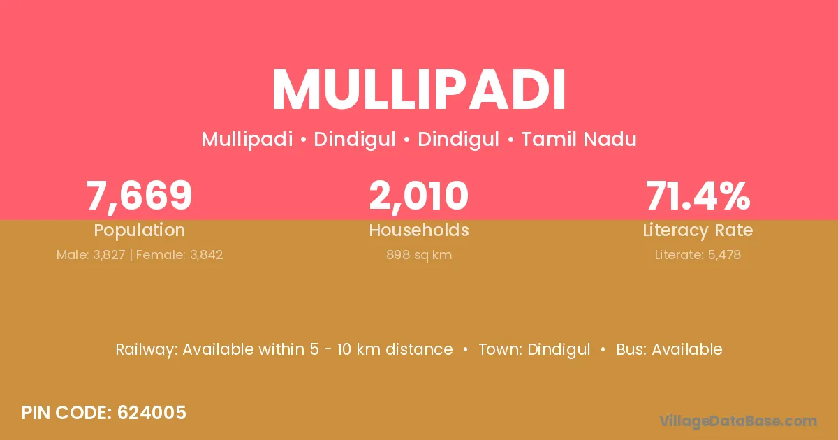 According to Census 2011 information, the village code of Mullipadi village is 642109.
