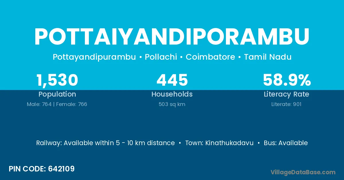 Pottaiyandiporambu village has a total population of 1,530 people, of which 764 are males and 766 are females.