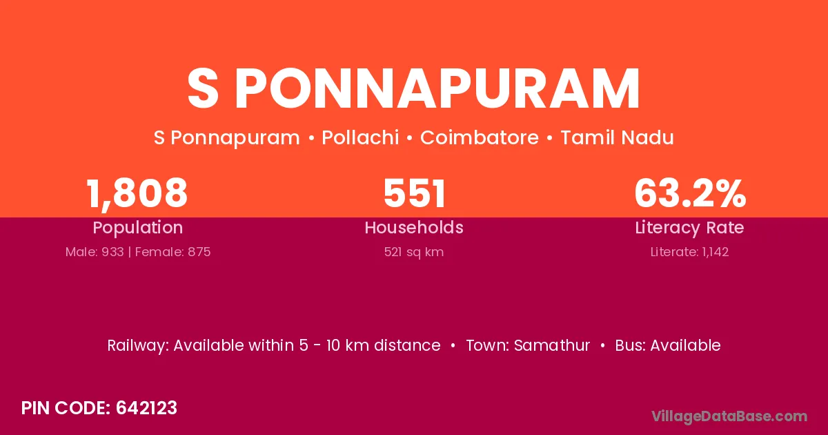 According to Census 2011 information, the village code of S Ponnapuram village is 642123.