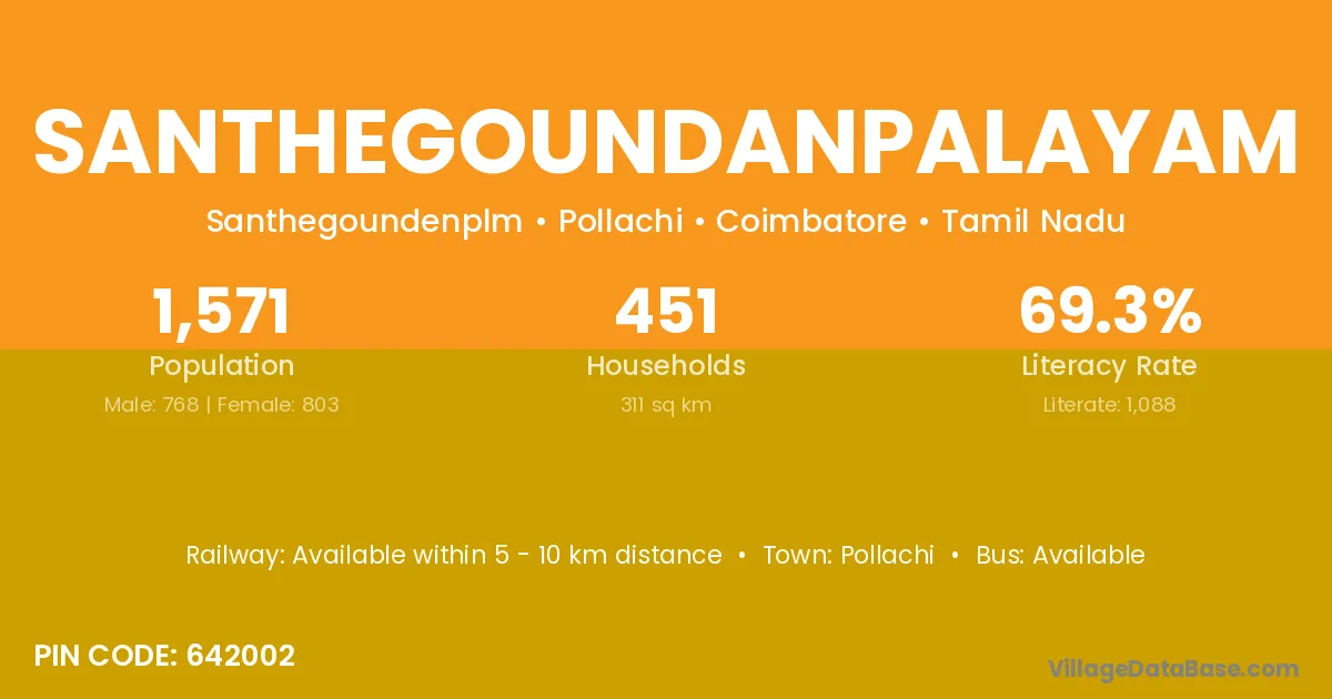According to Census 2011 information, the village code of Santhegoundanpalayam village is 642002.