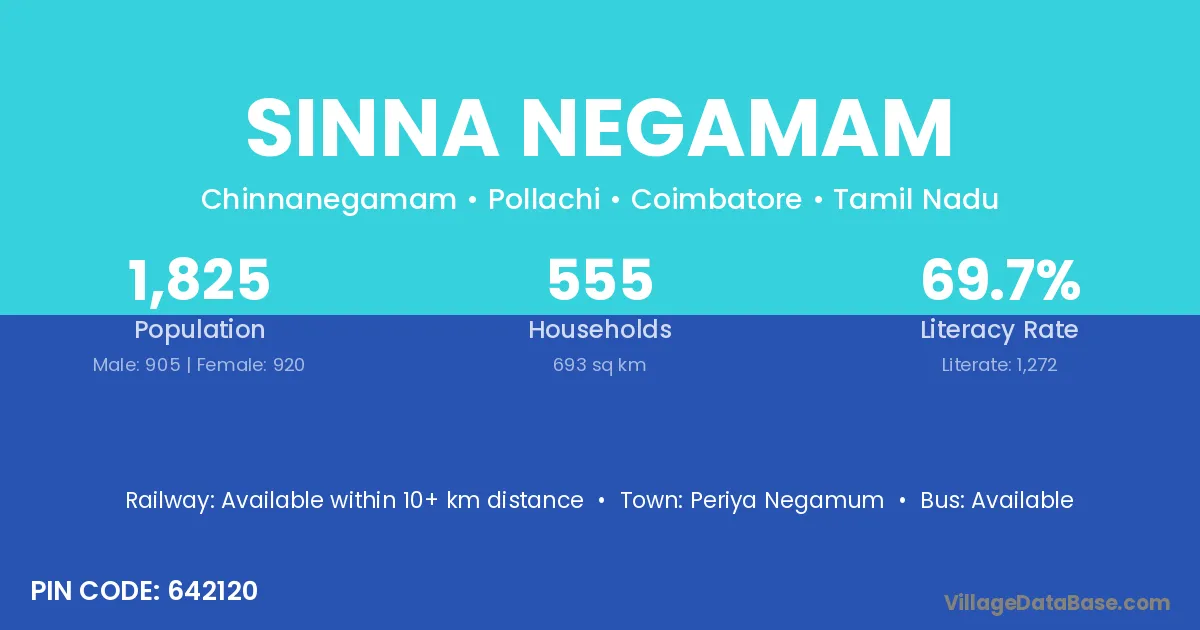 According to Census 2011 information, the village code of Sinna Negamam village is 642120.