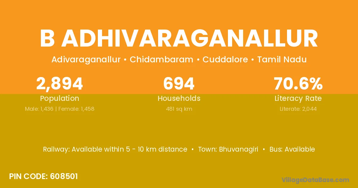 Bhuvanagiri is the nearest town to B Adhivaraganallur village for major economic activities