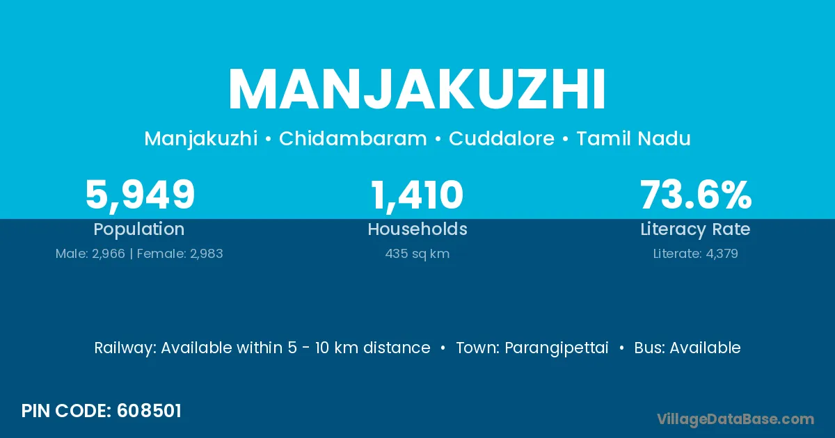 Parangipettai is the nearest town to Manjakuzhi village for major economic activities