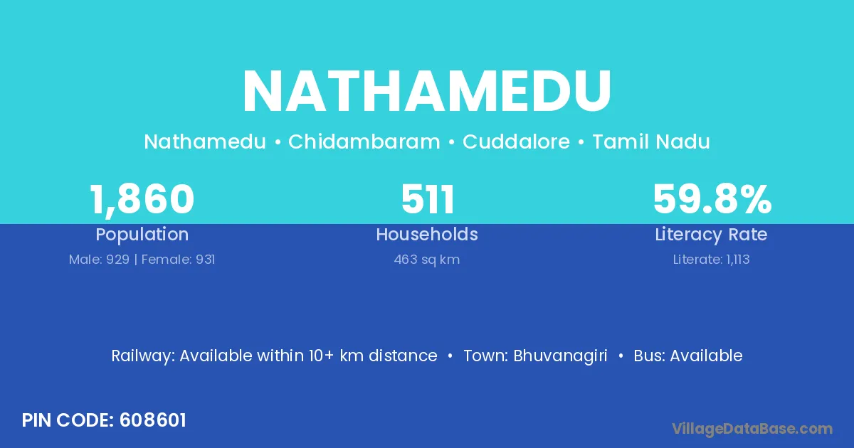 Bhuvanagiri is the nearest town to Nathamedu village for major economic activities