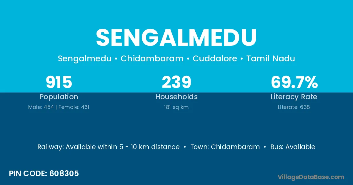 Chidambaram is the nearest town to Sengalmedu village for major economic activities