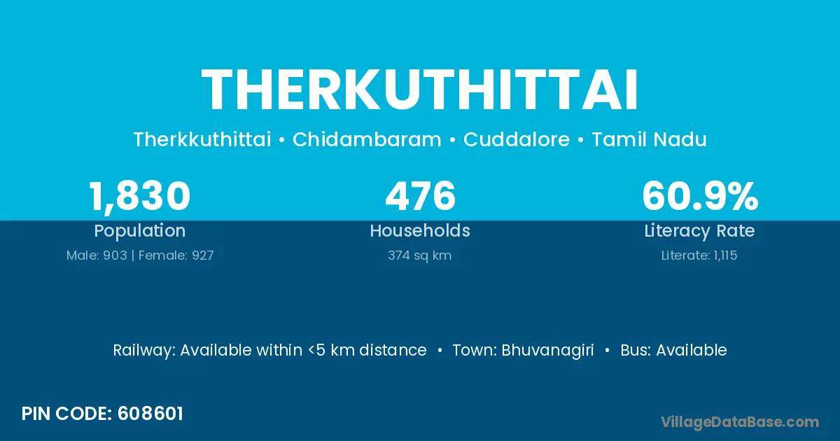 Bhuvanagiri is the nearest town to Therkuthittai village for major economic activities