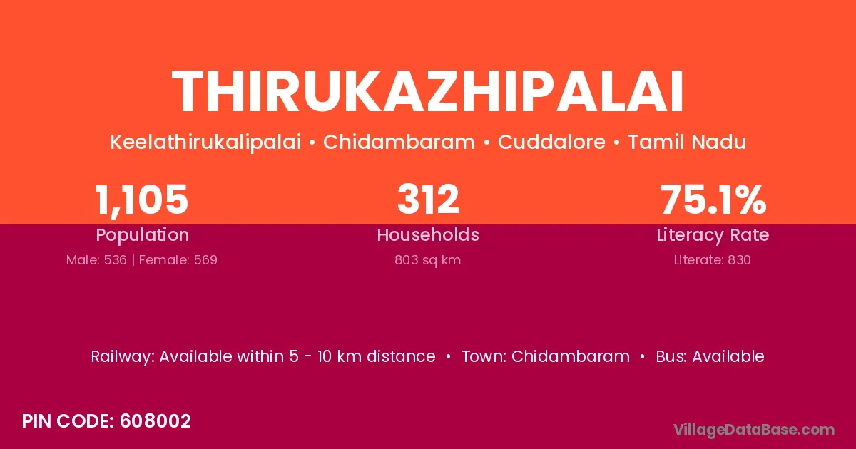According to Census 2011 information, the village code of Thirukazhipalai village is 608002.