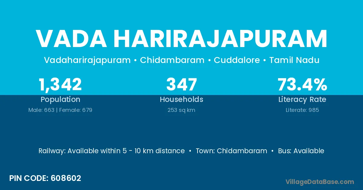 Chidambaram is the nearest town to Vada Harirajapuram village for major economic activities
