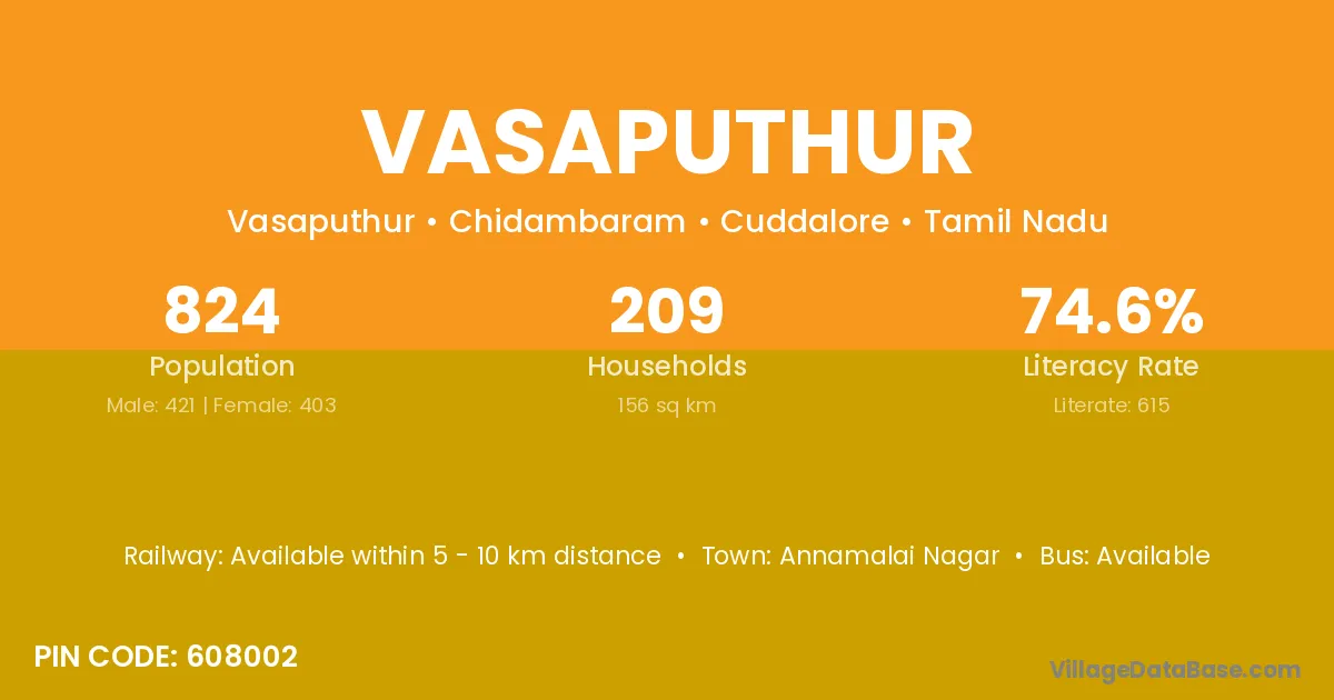 Vasaputhur village has a total population of 824 people, of which 421 are males and 403 are females.