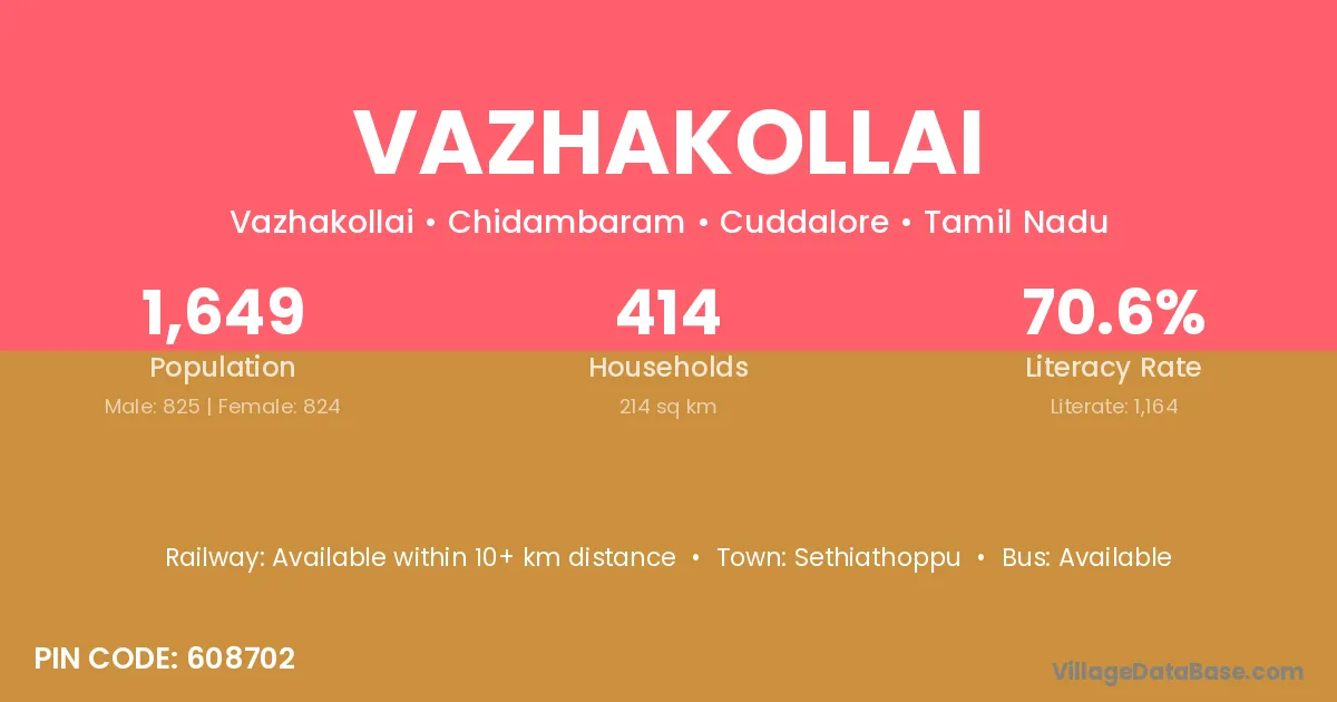 Vazhakollai village has a total population of 1,649 people, of which 825 are males and 824 are females.