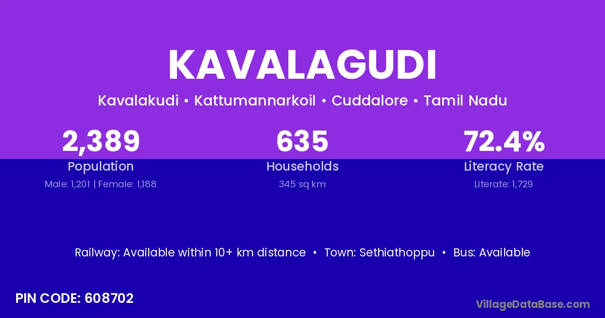 Sethiathoppu is the nearest town to Kavalagudi village for major economic activities