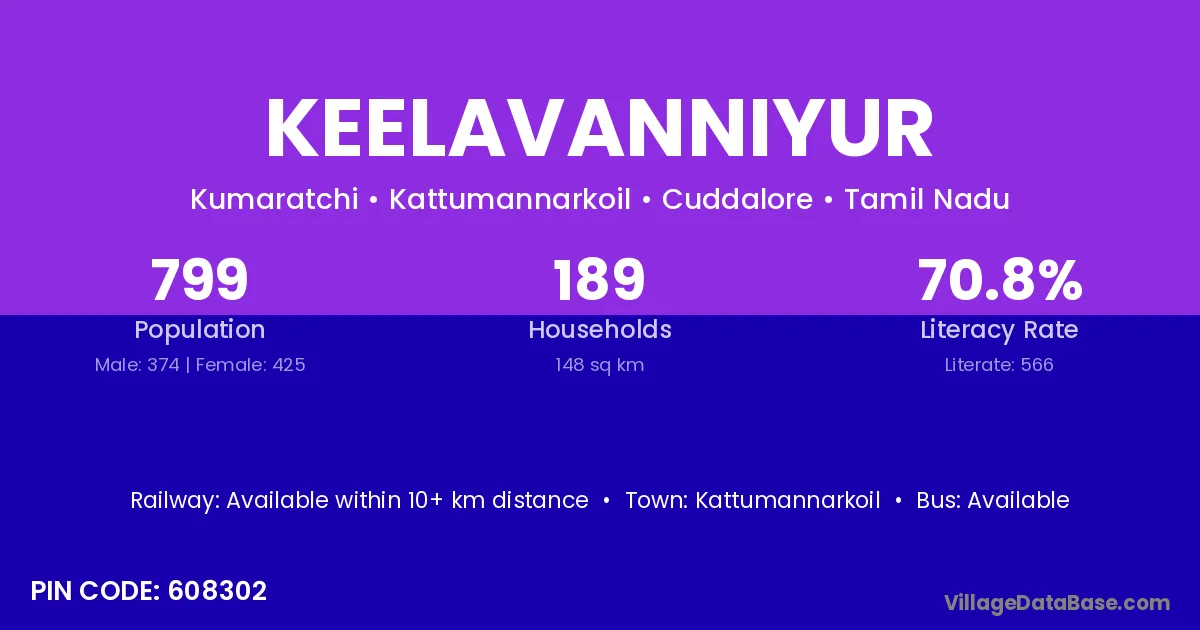 According to Census 2011 information, the village code of Keelavanniyur village is 608302.